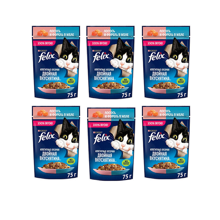 پوچ گربه فلیکس با طعم ماهی سالمون و قزلآلا در ژله